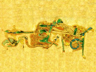 Celtic artwork is well known for its interlaced knotwork, which is found on stone crosses and jewellery, but was given its ultimate expression in